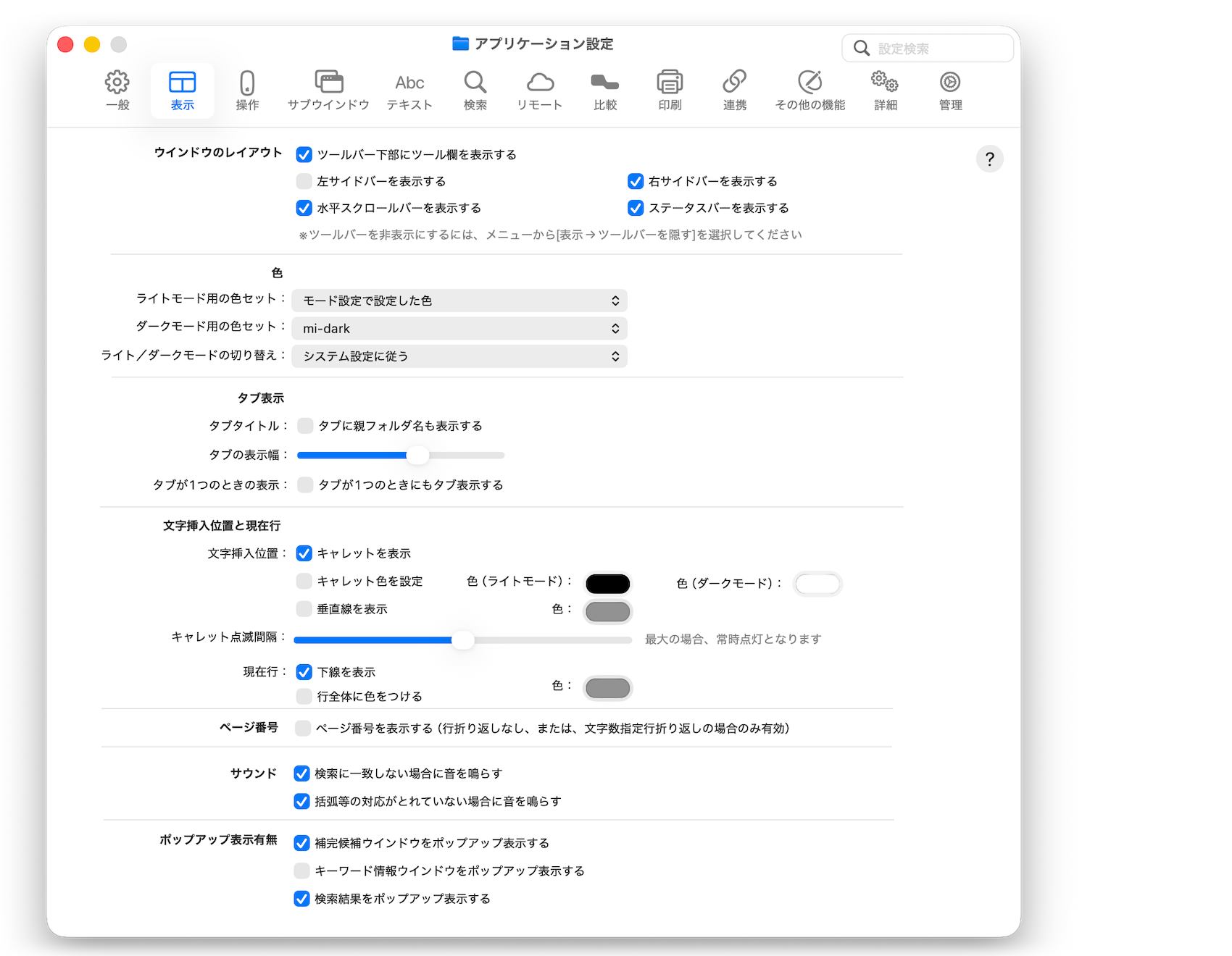 アプリケーション設定 - 「表示」タブ
