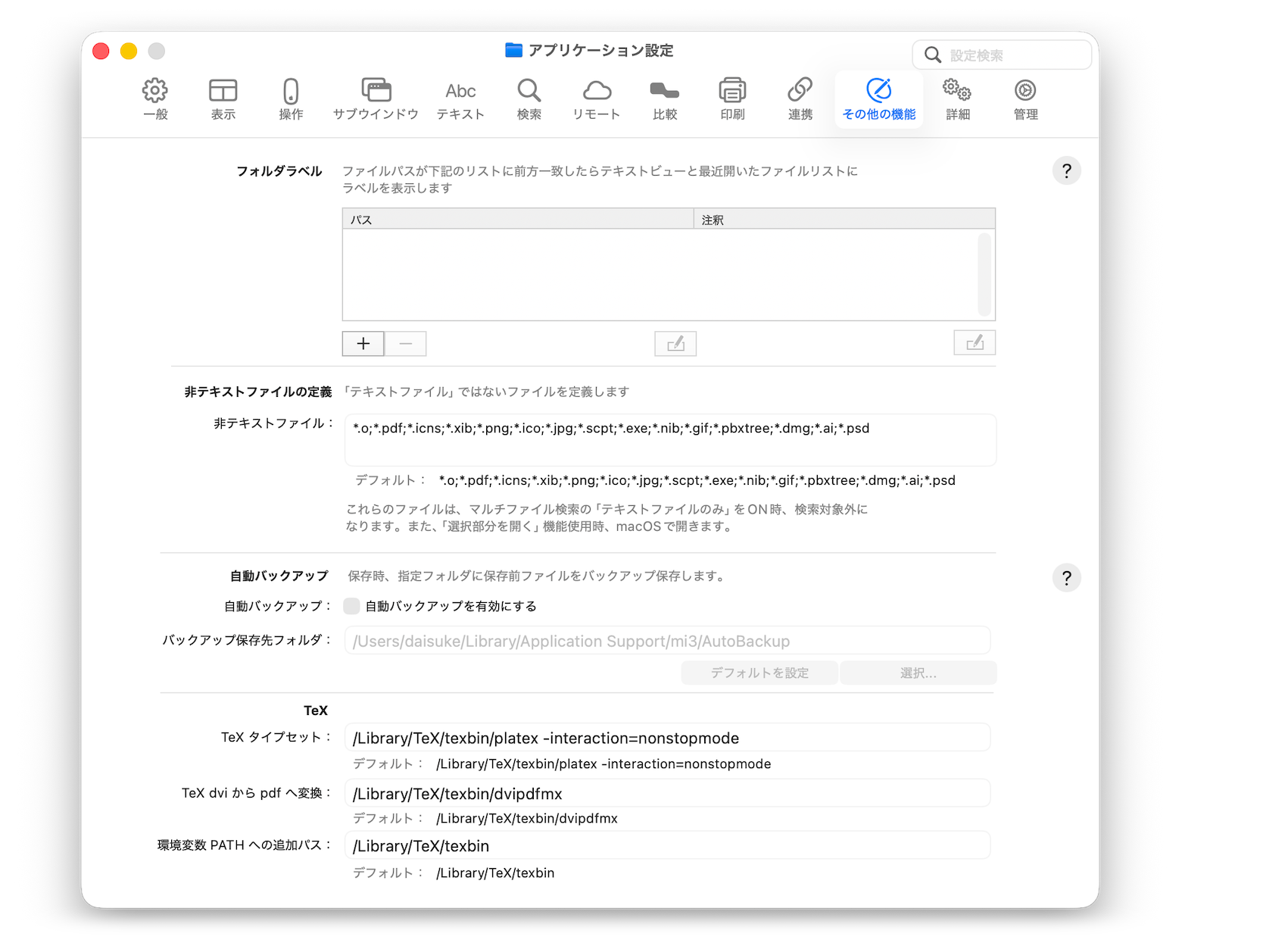 - デフォルトの値は、MacTeX(https://tug.org/mactex/)用に設定しています。