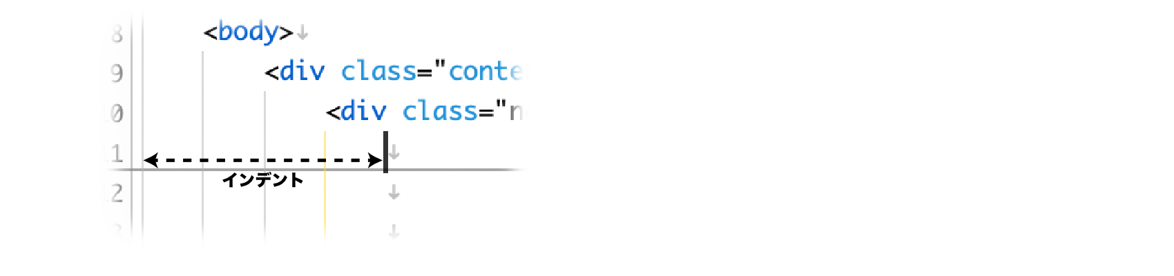 既存ファイルのインデントのルールはそのままにして、少しだけ編集したい場合などは「インデント計算の基準となる行」を「直前の行」に設定してください。 - テキストを選択して、メニューからを選択することで、選択範囲を自動インデントすることができます。