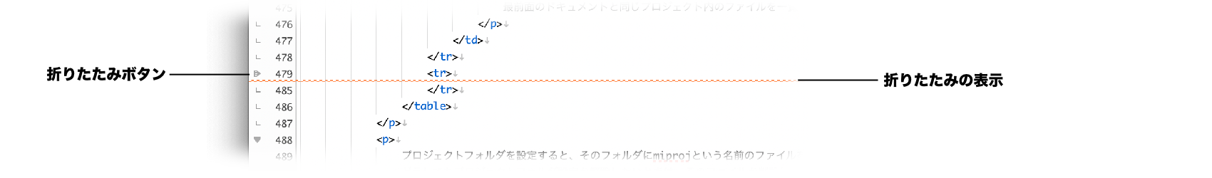 見出しの範囲や、括弧等の範囲を(行単位で)折りたたむことが可能です。