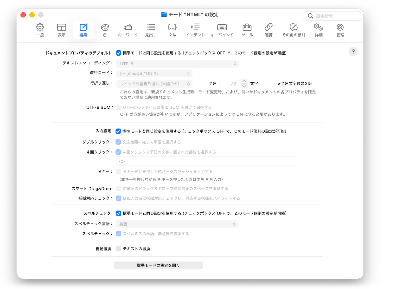 編集関連の設定を行います。